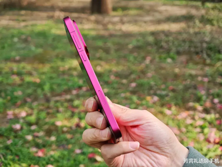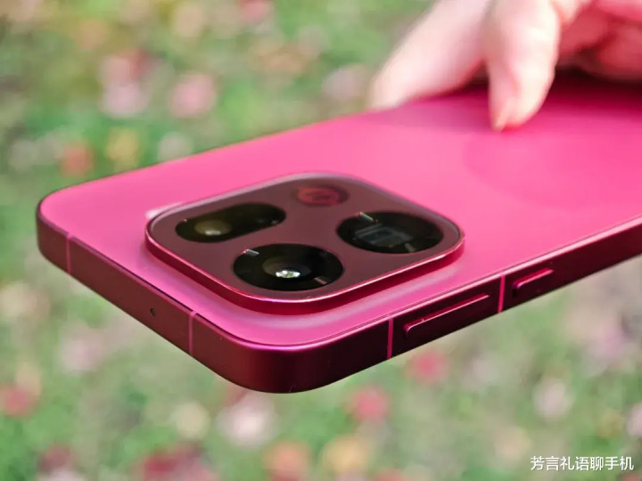 我们手里这部是主打的追光红配色,饱和度没有那么高,明亮又内敛,非常耐看。它的中框、背板、后摄模组都是同一种颜色。