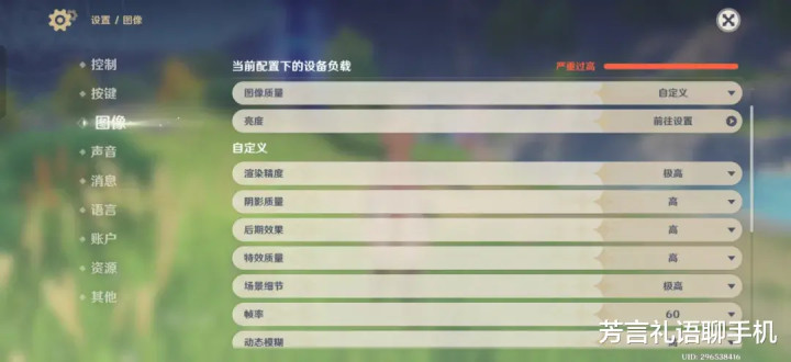 图像设置选择图像质量“极高”,帧率60。图像质量会自动切换为“自定义”,其他选项为默认。