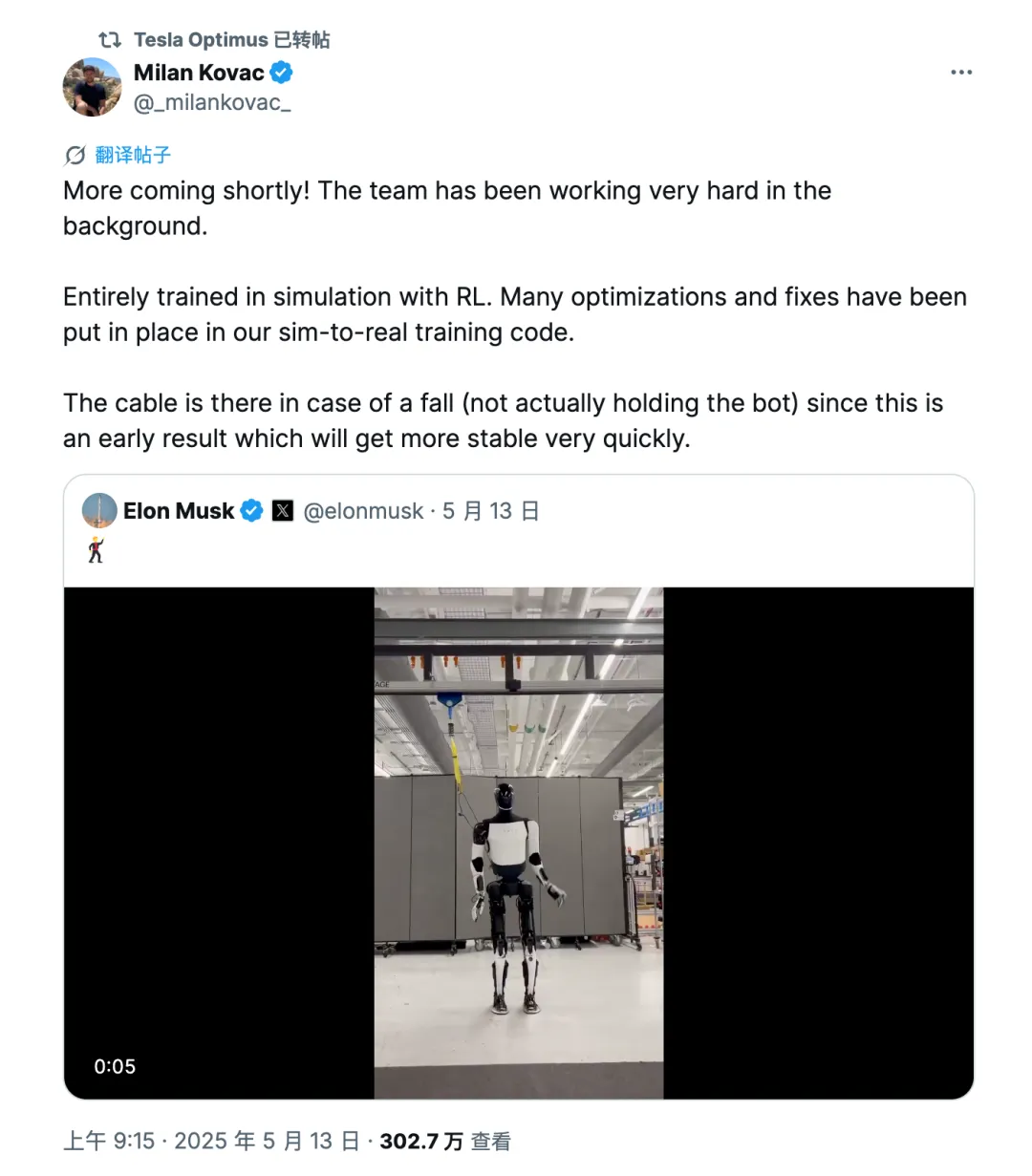 同时,特斯拉也在机器人项目中 Optimus 的训练中应用强化学习。今年 5 月,Optimus 公布两段机器人舞蹈视频,展现出极强的平衡协调性。特斯拉 Optimus 副总裁米兰·科瓦奇(Milan Kovac)透露,Optimus 的舞蹈技能“完全通过模拟环境中的强化学习训练”得来,无需人类演示或物理试错。