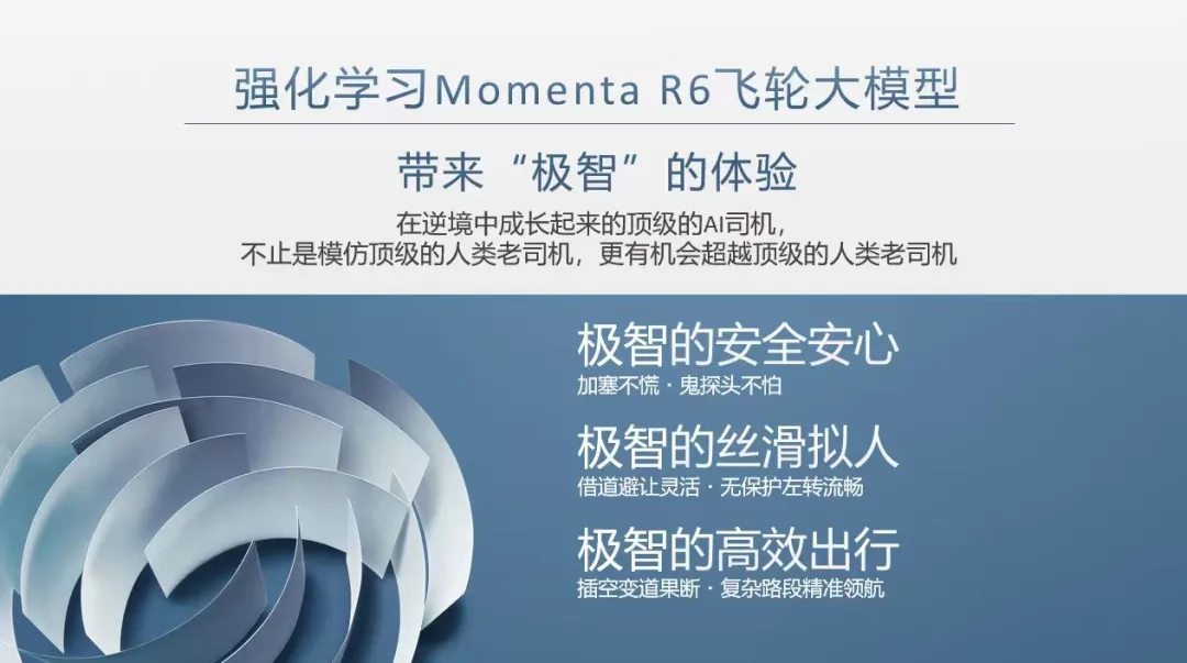 Momenta 很早就开始探索强化学习的应用。去年他们就已经成功验证了强化学习的算法、原型,今年开始推动 R6 飞轮大模型的真正量产落地。
