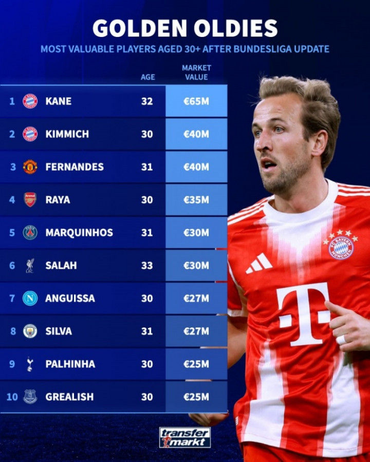 6.穆罕默德·萨拉赫(利物浦),33岁,3000万